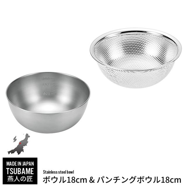 ボウル ザル セット ステンレス ボウル 18cm/パンチングボウル 18cm セット ざる ステンレスボウル 燕三条 燕 新潟 金物 金属 人気 有名
