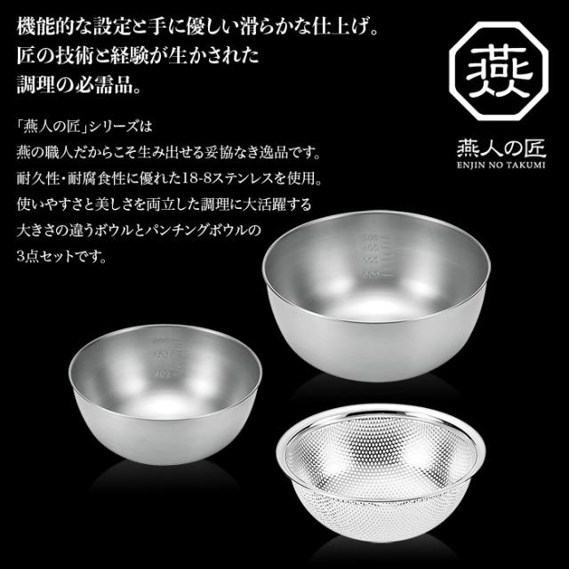 機能的な設計と手にやさしい滑らかな仕上げのボウル18cm、ボウル21cm&パンチングボウル18cmの3点セット。