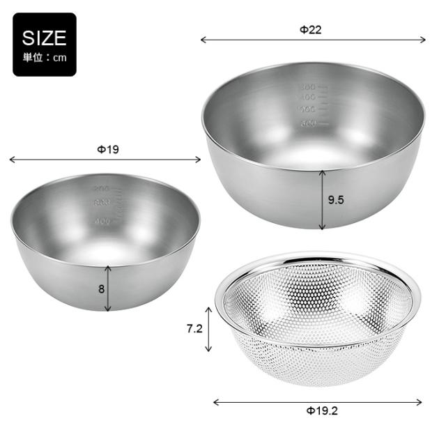 ■キーワード: ボウル ザル セット ステンレス ボウル 18cm