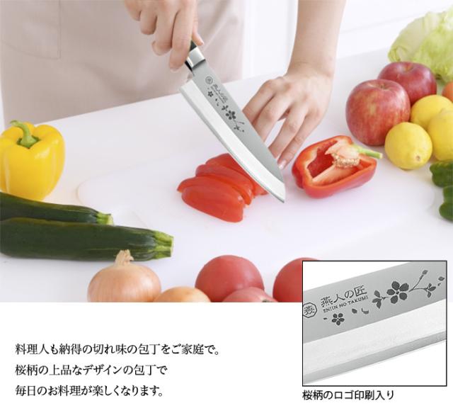 包丁には桜柄のログ印刷入り。