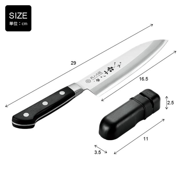■製品サイズ(約):●三徳包丁[全長]約29cm [刃渡り]約16.5cm●ロールシャープナー11×3.5×2.5cm
