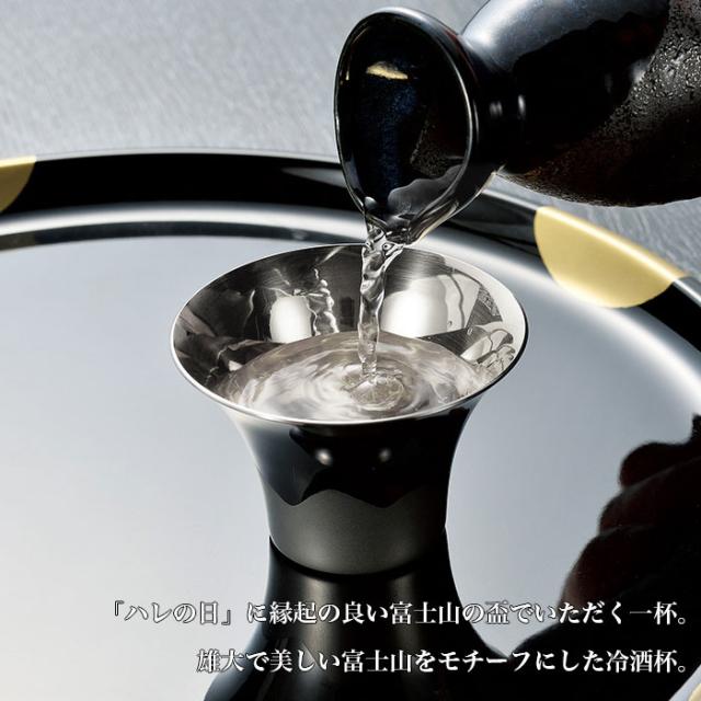 雄大で美しい富士山をモチーフにしたステンレス冷酒杯。