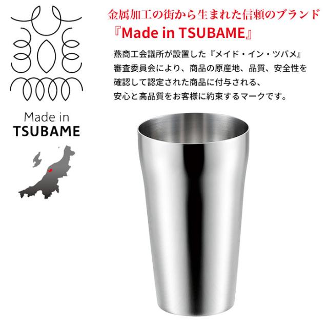 | 金属加工の街から生まれた信頼のブランド「Made in TSUBAME」 粋に味わう、シンプルデザインのタンブラー。 「Made in TSUBAME」は燕商工会議所が接地した「メイド・イン・ツバメ」の審査委員会より、商品の原産地、品質、安全性を確認して認定された商品に付与される、安心と高品質をお客様にお約束するマークです。 |