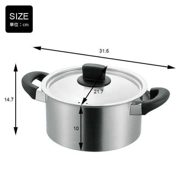 ■材質:[本体]19-0ステンレス(板厚1.2mm)[取っ手]フェノール樹脂[蓋]ステンレス鋼(板厚0.7mm)[蓋ツマミ]フェノール樹脂