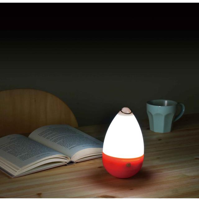 起き上がりこぼし形状なので、倒れることが無く、また揺らして癒す光としても。