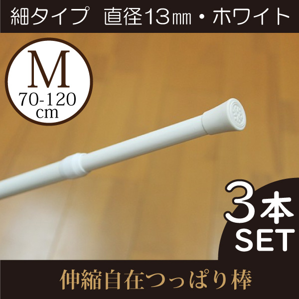 つっぱり棒 3本セット 細タイプM 日本製 ホワイト 格安 つっぱりポール 伸縮幅 約70〜120cm 直径13mm 収納 小窓 洗面所 突っ張り棒 間仕切り