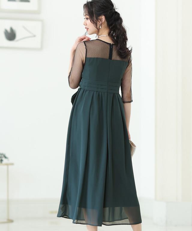 裏地が少し短めのデザインなのでシフォンの裾の透け感を楽しめる一枚になっています。