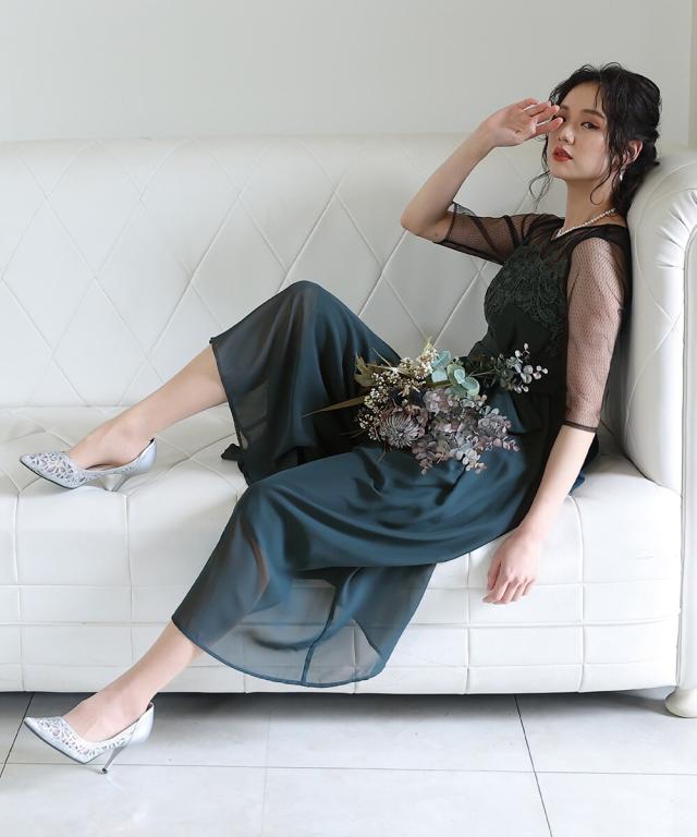 プールヴーのエンブロイダリーレースオールインワン・パーティードレス