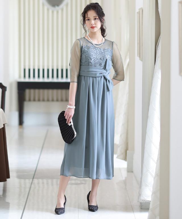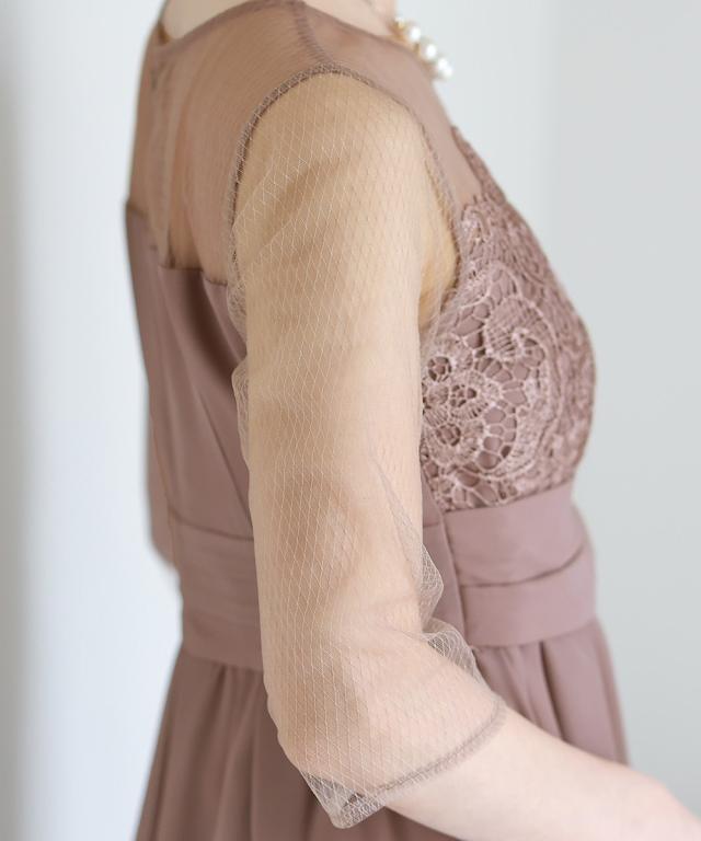 ■素材:◆素材: レース部分…ポリエステル100%、シフォン部分…ポリエステル100%、チュール部分…ナイロン100%、内側チュール部分…ポリエステル100%、裏地…ポリエステル100%、◆伸縮性:あり(チュール)、◆裏地:あり、◆ファスナー:あり、◆透け感:あり、◆付属品:なし、◆カラー:モーヴピンク/グレイッシュブルー/ピーコック