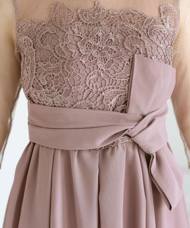 胸元のエンブロイダリーレースが高級感纏わせてくれる仕上がりになっています。