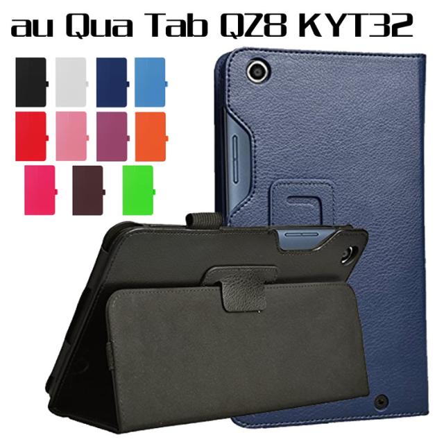 Qua tab 01 au(KYT31) 8インチ タブレット専用 京セラ キュア タブ スタンド機能付きケース タブレットケース 二つ折 カバー 薄型 軽量型 スタンド機能 高品質PUレザーケース