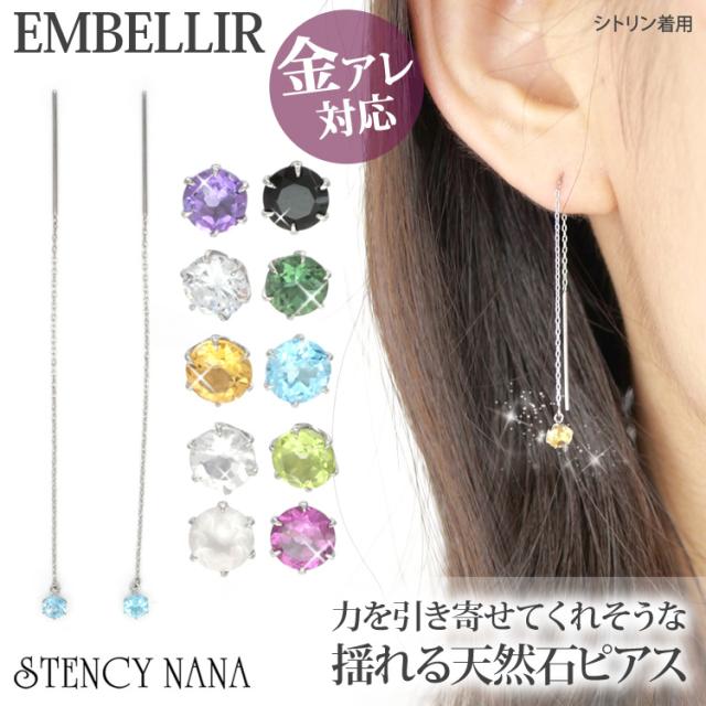 【送料無料】 金アレ対応 [EMBELLIR] ステンレスピアス 天然石が揺れるアメリカンピアス チェーンピアス 両耳用 パワーストーン キュービックジルコニア サージカルステンレス