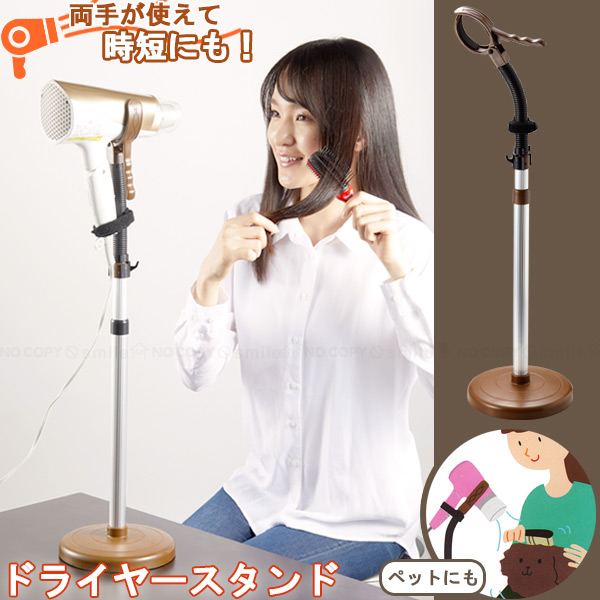 ドライヤー スタンド ハンズフリー ヘアー 両手が使える 台座 固定 伸縮機能 フック付き 時短 ヘアースタイリング ペット 入浴 風呂上がり ブラウン 髪の毛 乾かす ドライ スマイルキッズ 201812-02