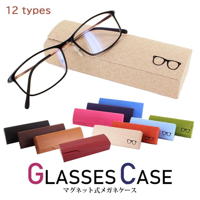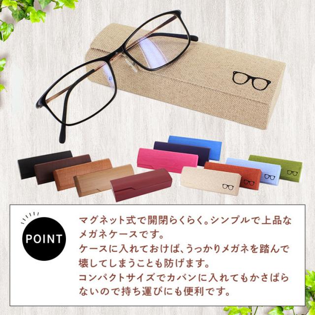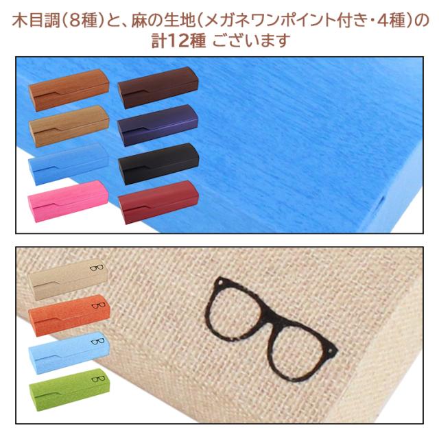 メガネケース おしゃれ ハード 眼鏡ケース 大人 かわいい マグネット式 プレゼント ギフト 木目調 麻素材 メガネマーク ワンポイント 全12色 メンズ レディース 男性 女性 学生 子供 合皮素材 内側ベロア生地 クロス付き nuk003
