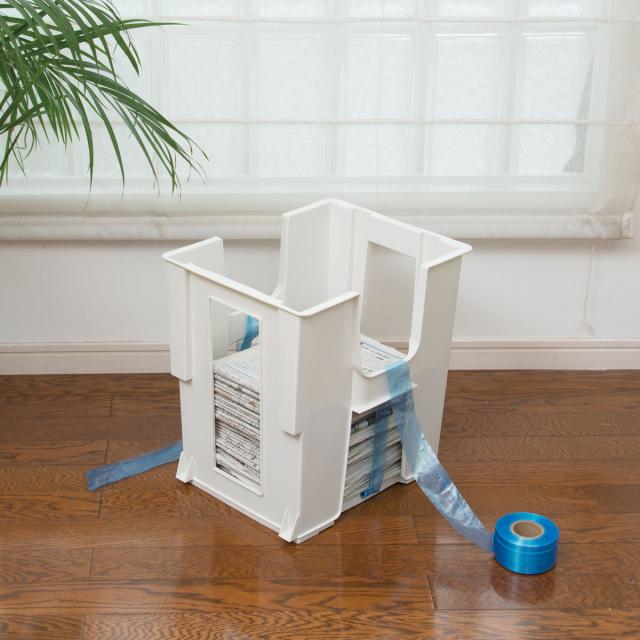 ●本体底はひも通し穴付きで不要になった新聞を入れたまま簡単にひも掛けできます。