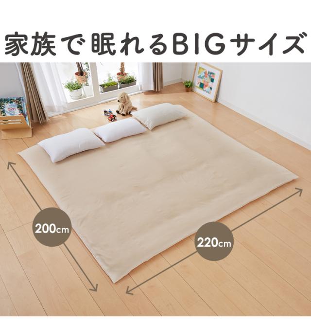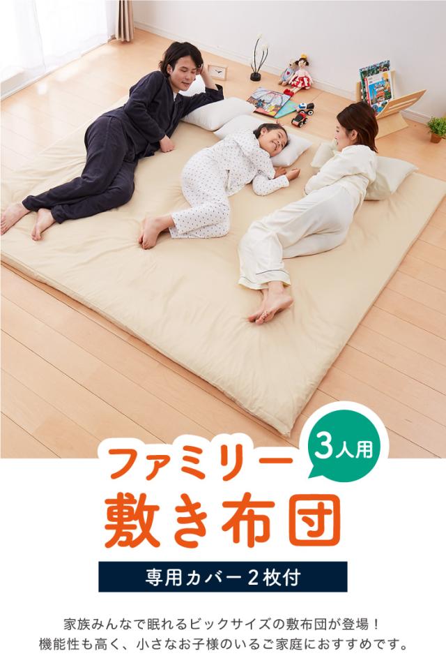 敷き布団 ファミリー 3人用 220×200 カバー付き カバー2枚付きテイジン製中綿使用 防ダニ 抗菌 防臭 大きい 大判 敷布団 ワイド敷布団 家族布団 しき布団 家族用 ごろ寝 お昼寝 テイジン【送料無料】