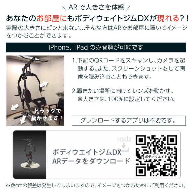 | ご注意 | ・周囲に十分なトレーニングスペースを確保してください。 ・この商品は「2個口」になります。 ・ご購入前に「10cm~15cmほど天井に余裕があることを必ず確認」してからご購入ください。 |