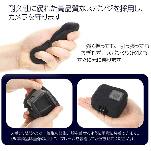 ◇ソフトでタフなスポンジ:柔らかくかつ、強く引っ張ってもちぎれないタフなスポンジを使用しています。【付属品】防風スポンジケース(※本商品は ウェアラブルカメラ 本体は付属しません。