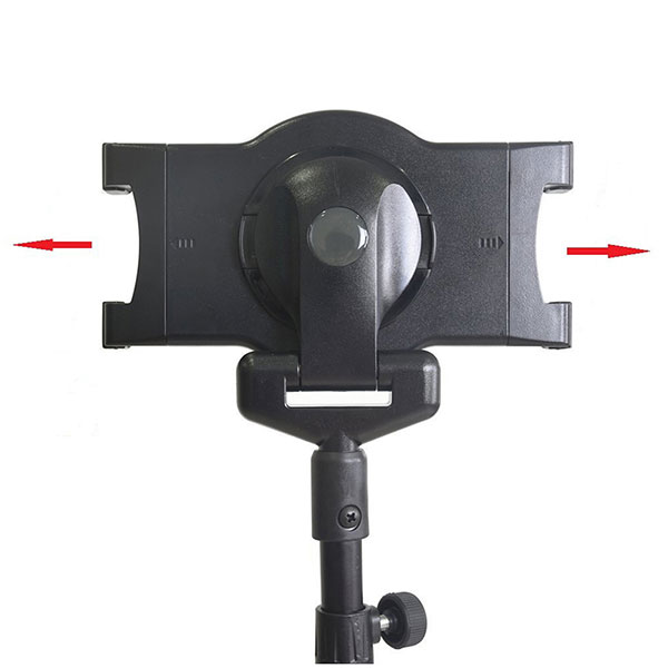 ◇取り付けは、ホルダーを伸ばして機器を挟み込み、スタンドに取り付ければ完成です。