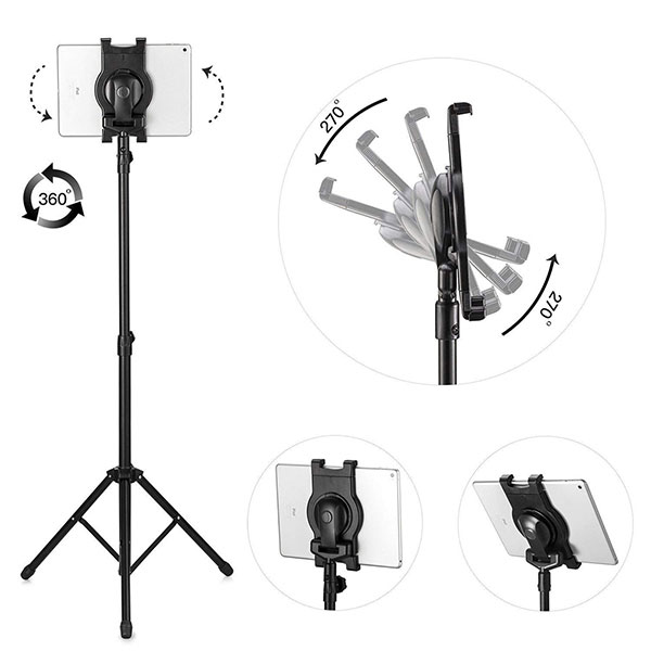 送料無料 収納袋付き 固定用 スタンド 三脚式 タブレットPC(iPad・iPad mini・iPad 2)高さ調節可 折り畳み可 360度回転 固定ホルダ