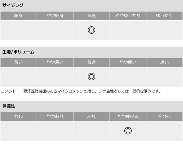 通気性に優れたメッシュ形状のDRY生地は、