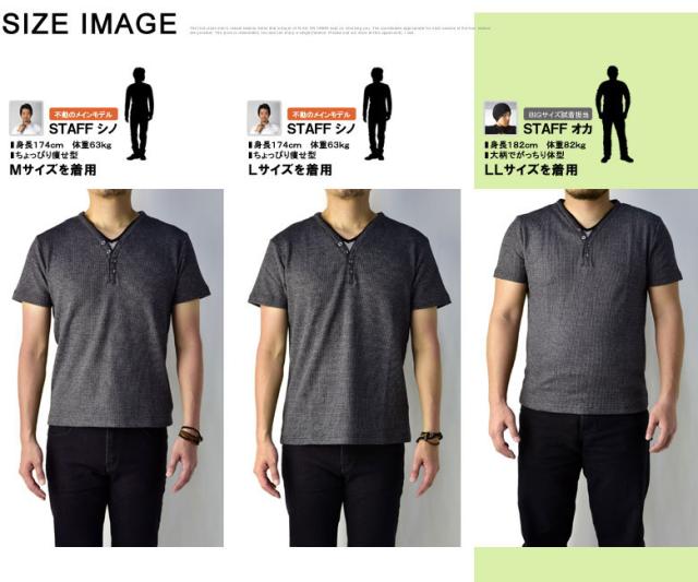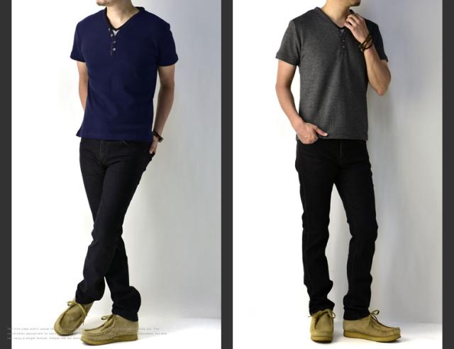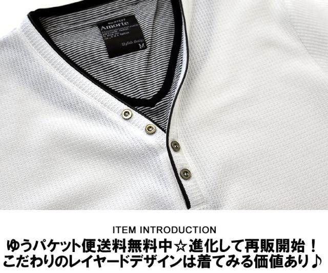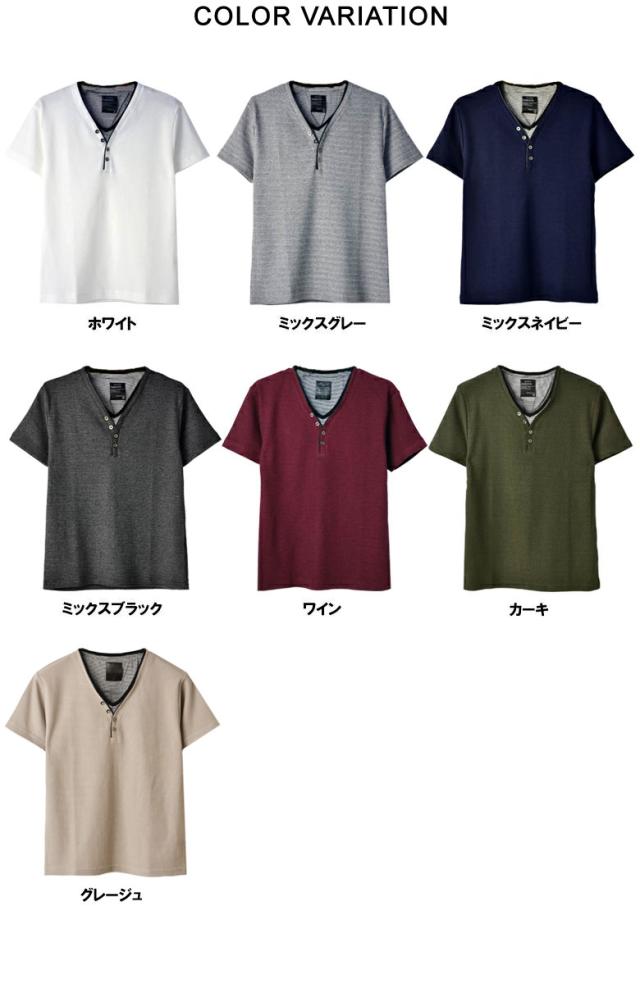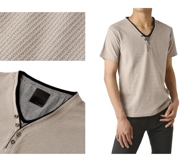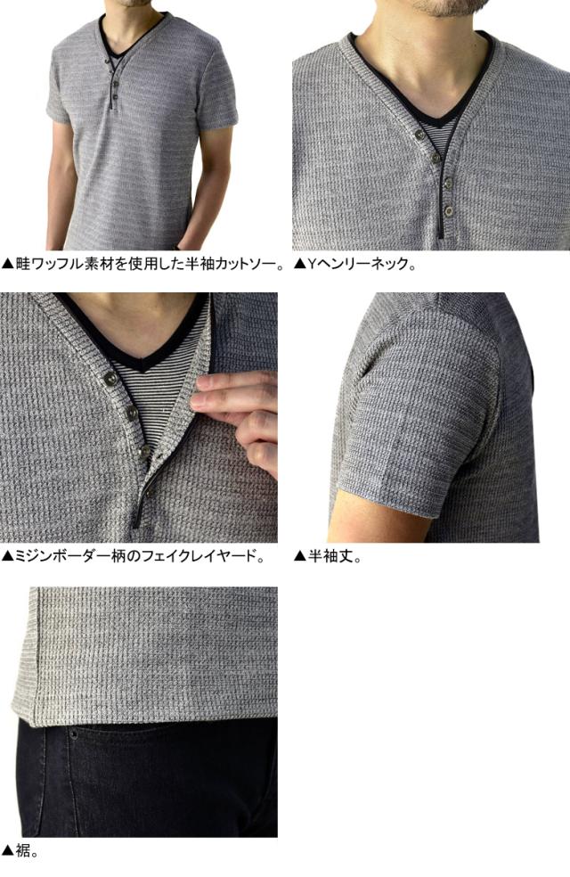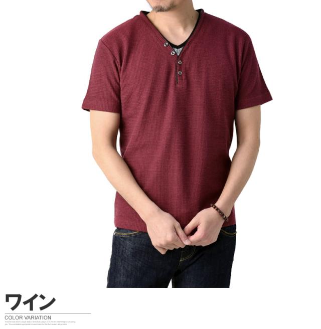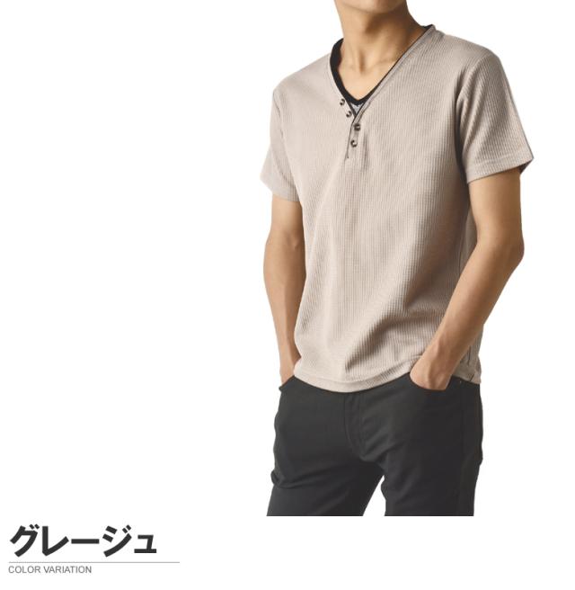 Tシャツ カットソー 半袖 メンズ 送料無料 畦ワッフル 2フェイク ヘンリーネック Tシャツ【B4B】【パケ2】【A】