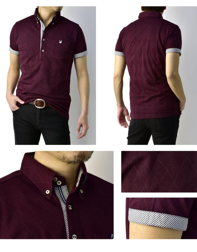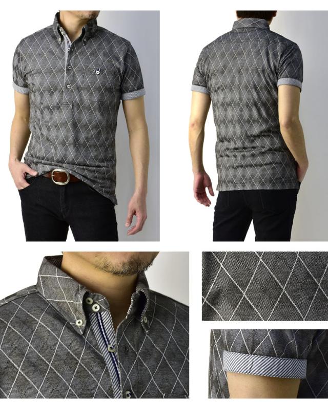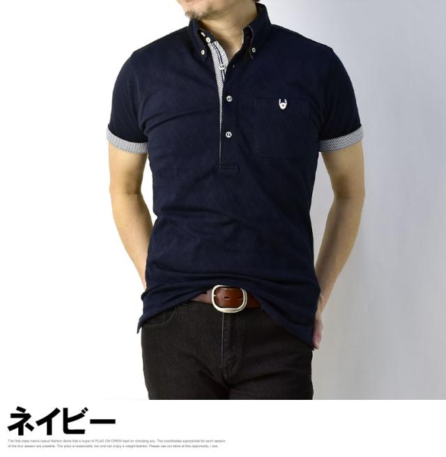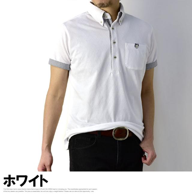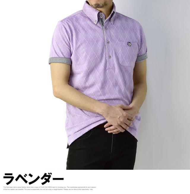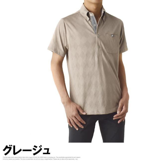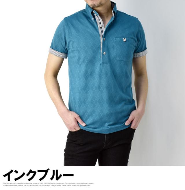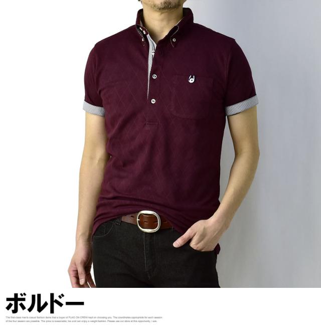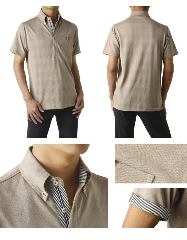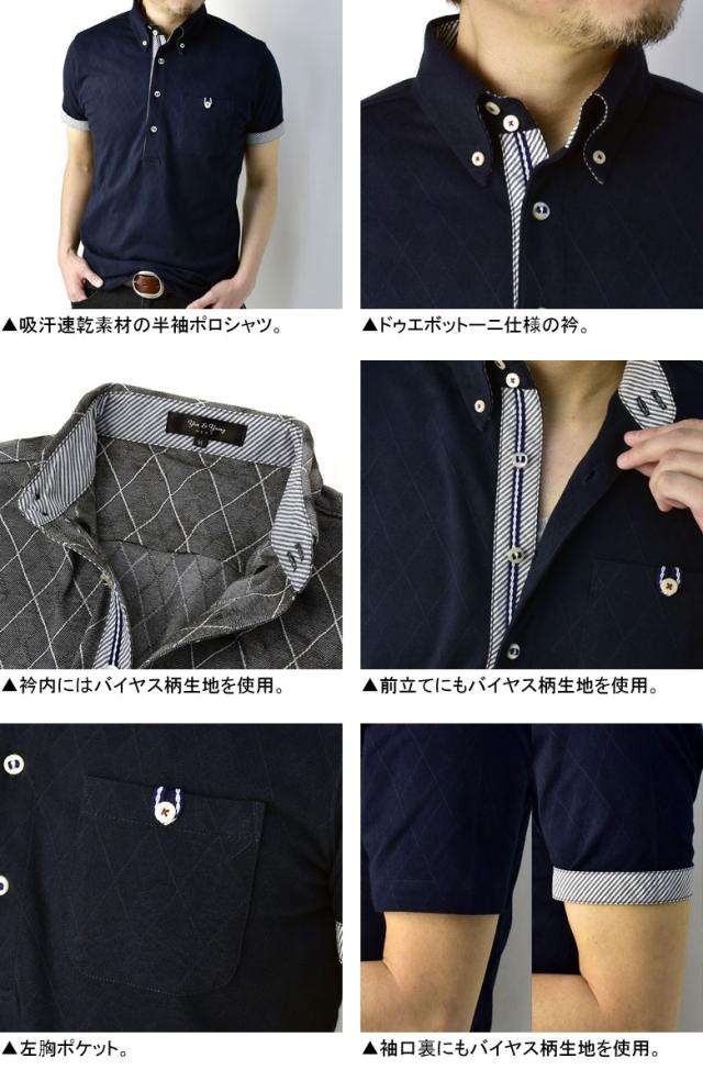 吸汗速乾 ポロシャツ 半袖 メンズ ボタンダウン アーガイル柄 消臭 ドゥエボットーニ ジャガード カットソー トップス【B5F】【パケ2】