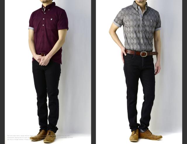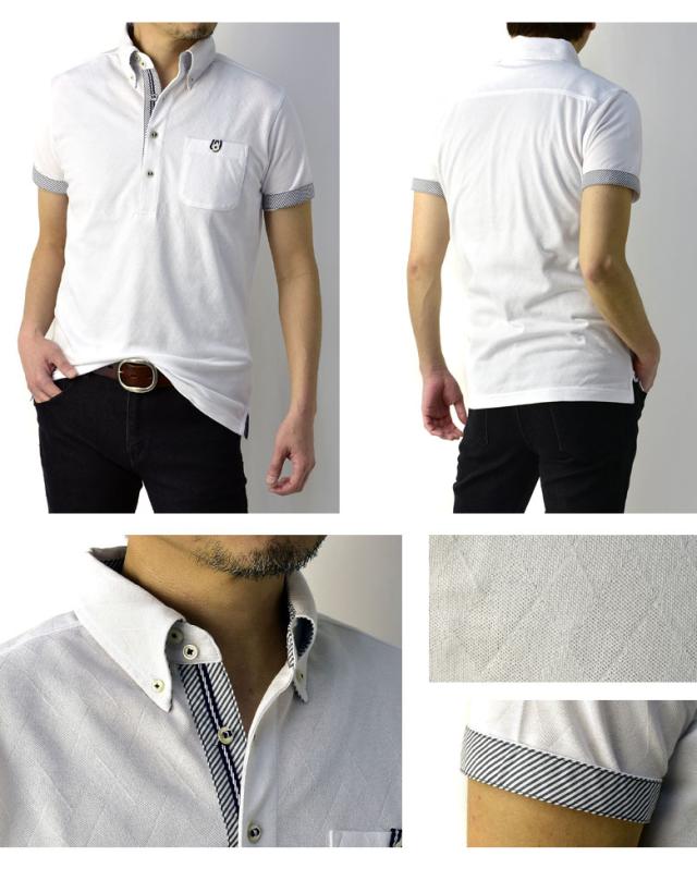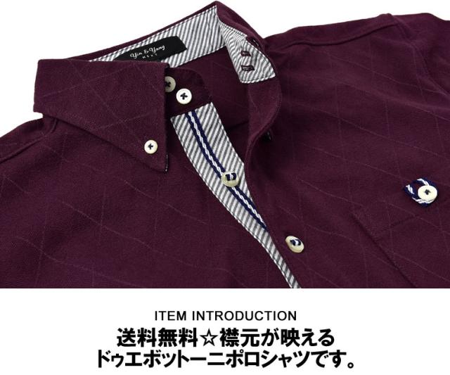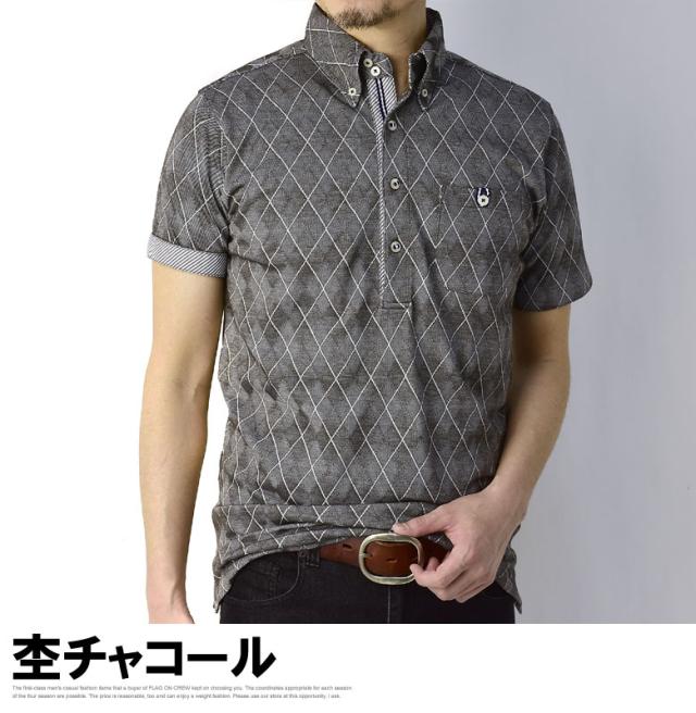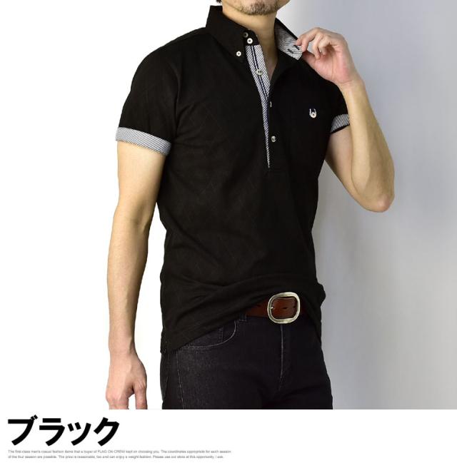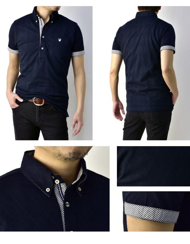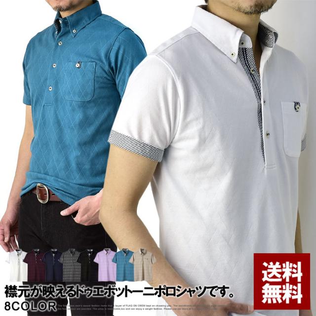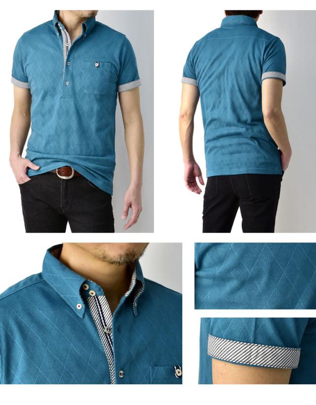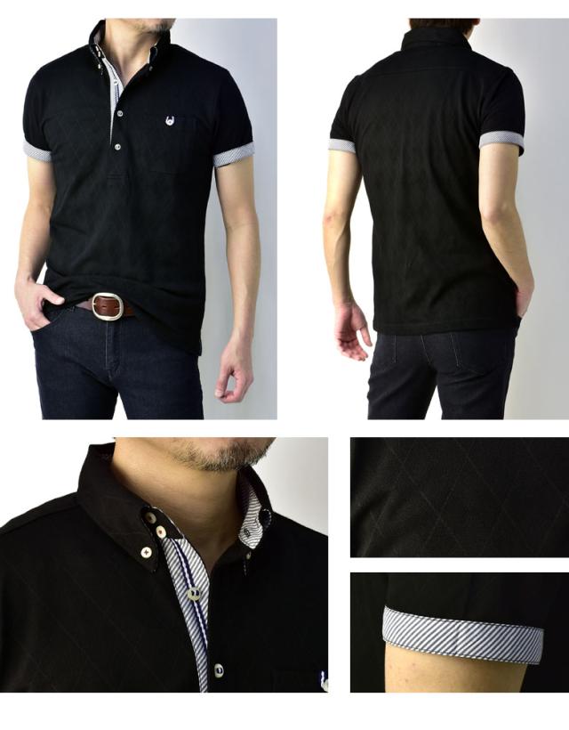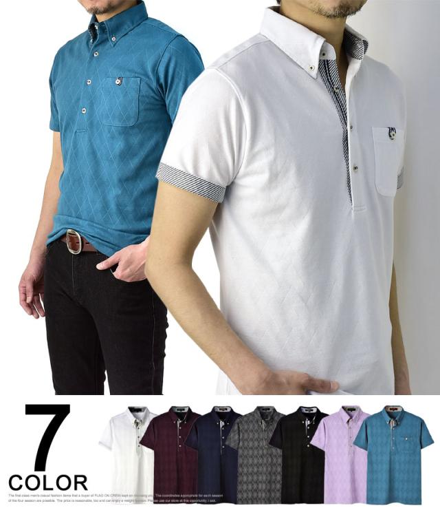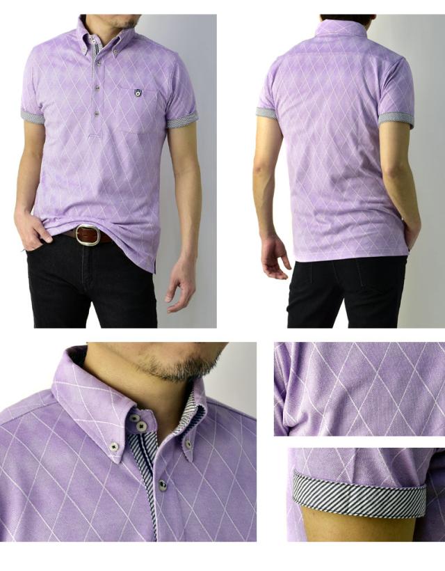 吸汗速乾 ポロシャツ 半袖 メンズ ボタンダウン アーガイル柄 消臭 ドゥエボットーニ ジャガード カットソー トップス【B5F】【パケ2】