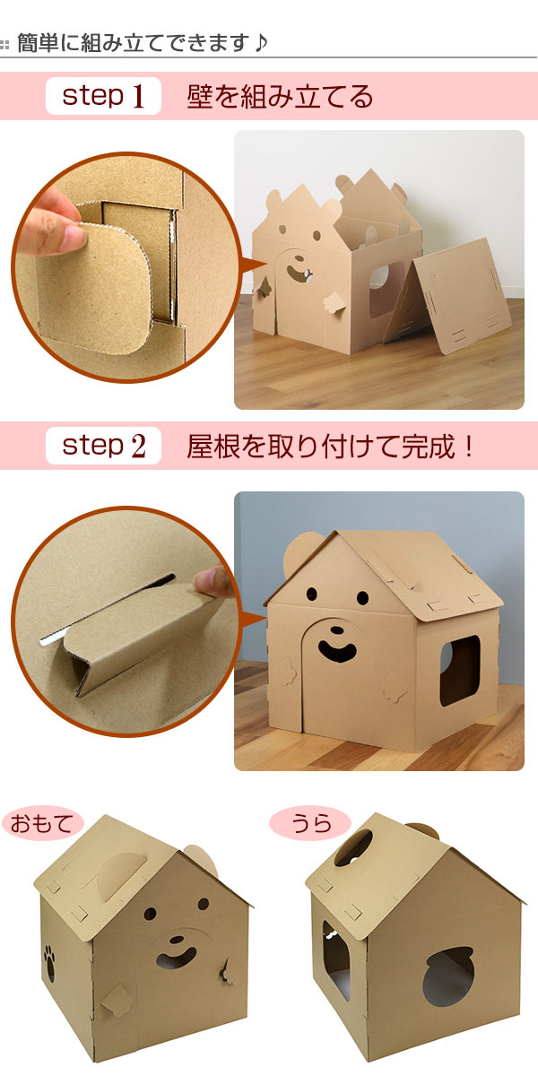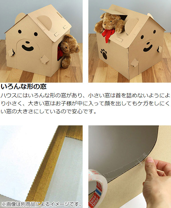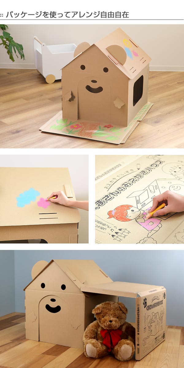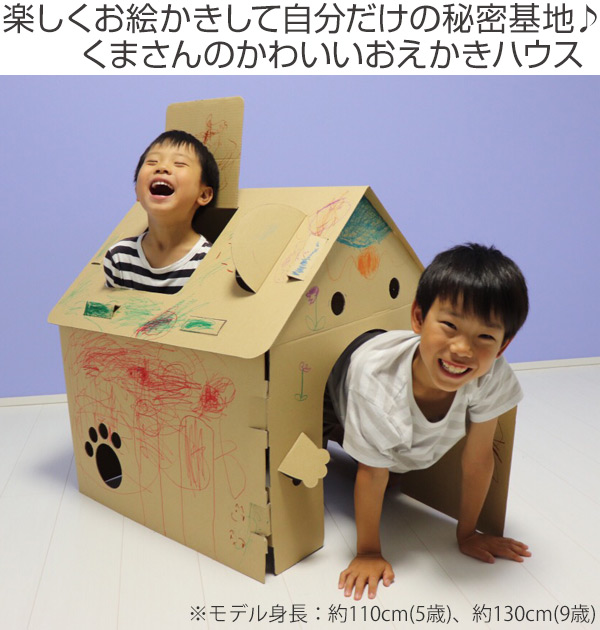 ダンボール 家 ハウス くま ダンボールハウス 子供 組立 おままごと ( 段ボール お絵かき おもちゃ キッズハウス プレイハウス 誕生日 プレゼント おうち 知育玩具 クリスマス 段ボールハウス 工作 プレイテント 女の子 男の子 )