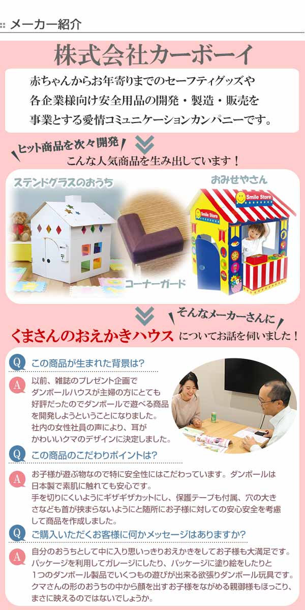 親子で一緒に楽しく組立てて、くまさんのおえかきハウスを完成させましょう。