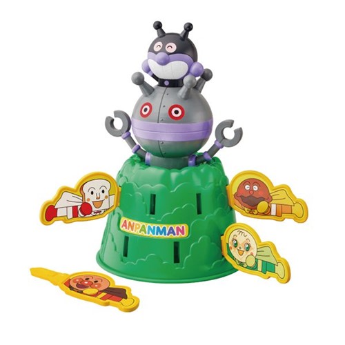 スティックを本体の穴に差し込み当たりの場所に差し込むと、ばいきんまん人形がポンッと飛び出すハラハラドキドキのゲーム!