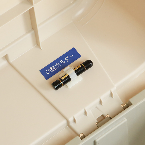 目に付きやすくなる位置に印鑑ホルダーを取り付けてください。印鑑サイズは直径1.2cmものだと、落ちずにしっかりフィットしてくれます。