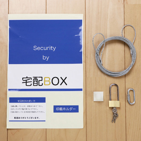 付属品:本体、蓋、ワイヤー、南京錠、鍵(鍵3個付)、連結リング、印鑑ホルダー、シール