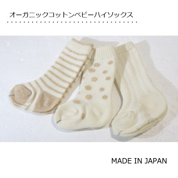 【3足組】オーガニックコットンベビーハイソックス 日本製 赤ちゃん新生児用 靴下