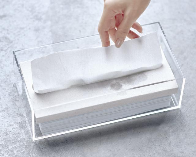 吸湿性の高さから、キッチンや洗面所など水回りでのご使用に最適です。ペーパーを引き出すときに飛び散りやすい水分をすぐに吸水し、自然に乾燥します。ケース内のペーパーが湿りにくく最後まで快適に使えます。