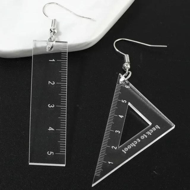 アクリル製の透明の三角定規とモノサシをモチーフにした面白いステンレスピアス。
