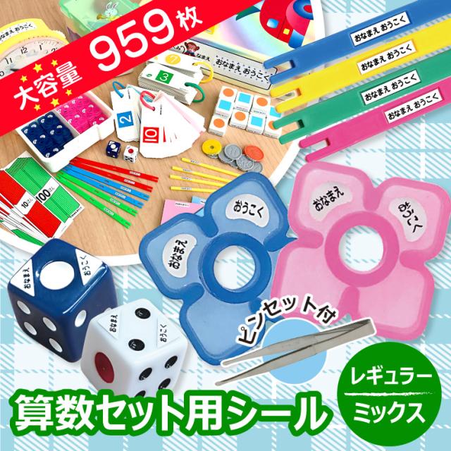 算数セット用お名前シール 【白地】 ピンセット付き ミックスデザイン / お名前シール 名前シール おなまえ 名前 ネーム シール 算数 さんすう セット 防水 耐水 小学校 入学 準備 卒園 漢字 ローマ字 カタカナ 名入れ おはじき 数え棒 小さい シンプル 送料無料
