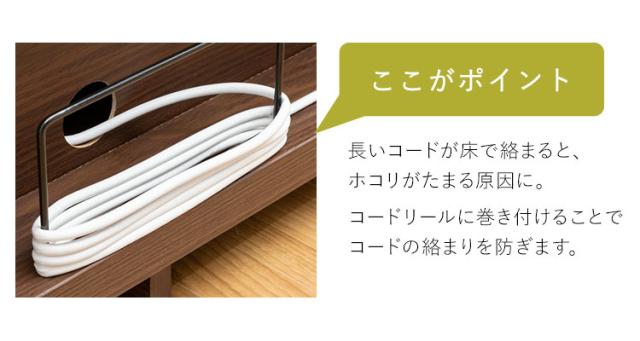 配線の整理に便利な配線穴とコードリール付き。