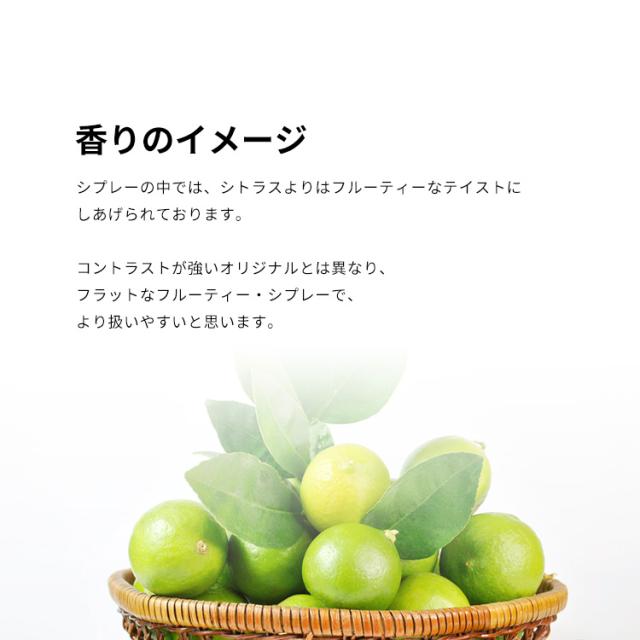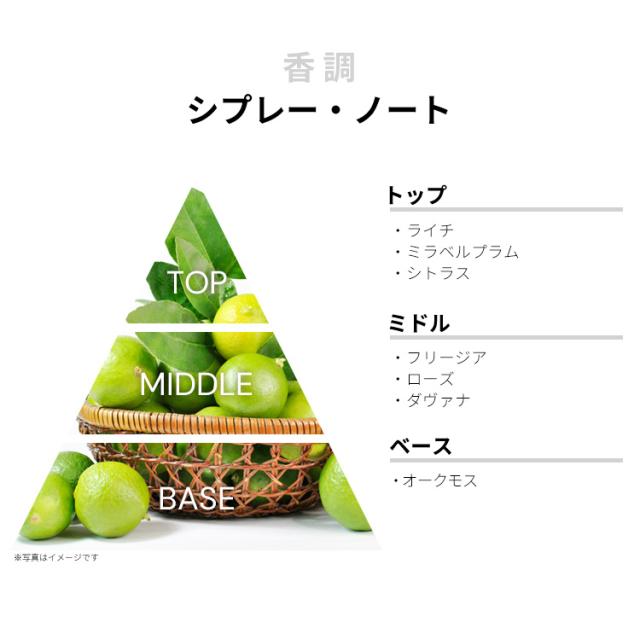 香りは、さっぱりとしたシプレー・ノートの香調がベース。シプレーの中では、シトラスよりはフルーティーなテイストにしあげられております。