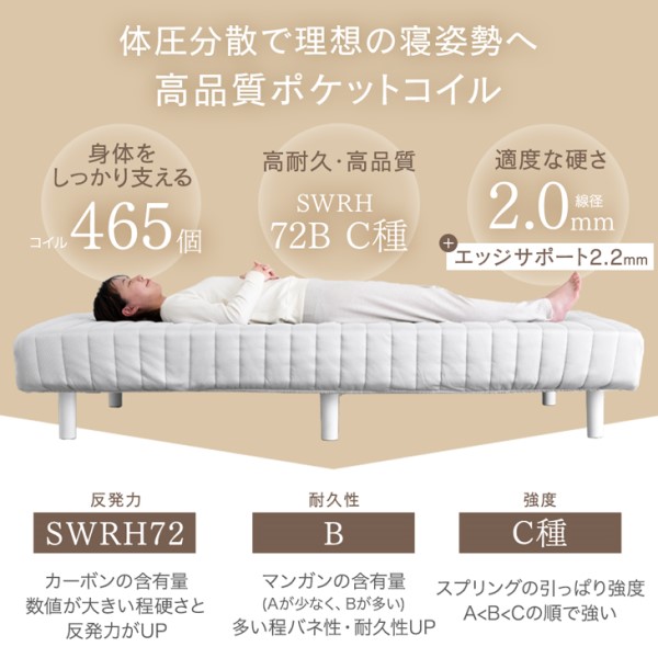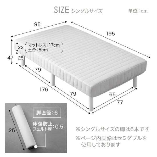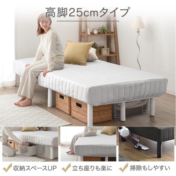 【正午〜P5%還元】 脚付きマットレス シングル RENEW ワントーンデザイン 収納力UP!高脚25cm 洗えるカバー付 ポケットコイル 洗えるカバー シングルベッド シングルベット ベッド 脚付ベッド 脚付マットレス 脚付き ハイタイプ 圧縮 一体型