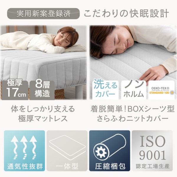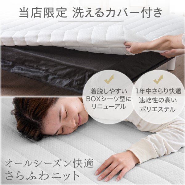 ※こちらの商品は、2022年12月5日より、ナチュラル脚からマットレスと同色のワントーンデザインに、カバーを取り外ししやすいボックスシーツ型に変更、横幅97→95cm、フレームが木製→スチールに仕様変更しました。