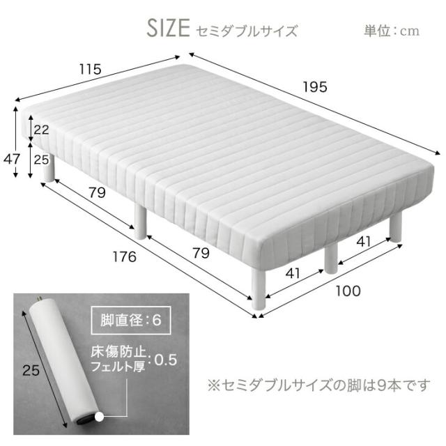 脚付きマットレス セミダブル RENEWワントーンデザイン 収納力UP!高脚25cm 洗えるカバー付 ポケットコイル カバーリング 脚付きマットレスベッド セミダブルベッド 脚付きベッド 足つきマットレス 足付きマットレス ベッド マットレスベッド おしゃれ