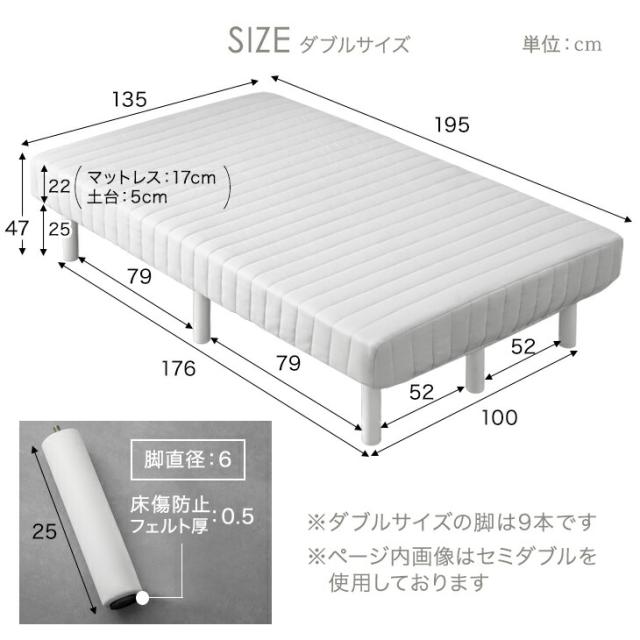 【正午〜P5%還元】 脚付きマットレス ダブル RENEWワントーンデザイン 収納力UP!高脚25cm 洗えるカバー付 ポケットコイル カバーリング 脚付きマットレスベッド ダブルベッド 脚付きベッド 足つきマットレス 足付きマットレス ベッド 一体型