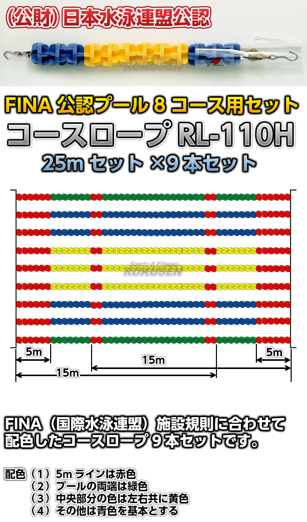 コースロープ RL-110H FINA公認プール 8コース用 25mセット×9本セット プール