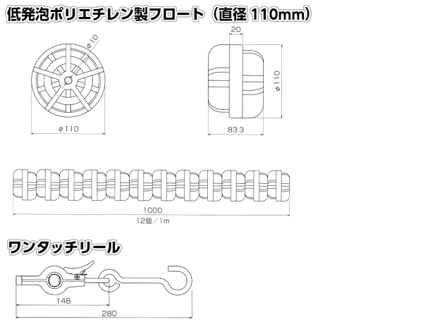 フロートがワイヤーにセットされていますので長さを調整するだけですぐにご使用いただけます。