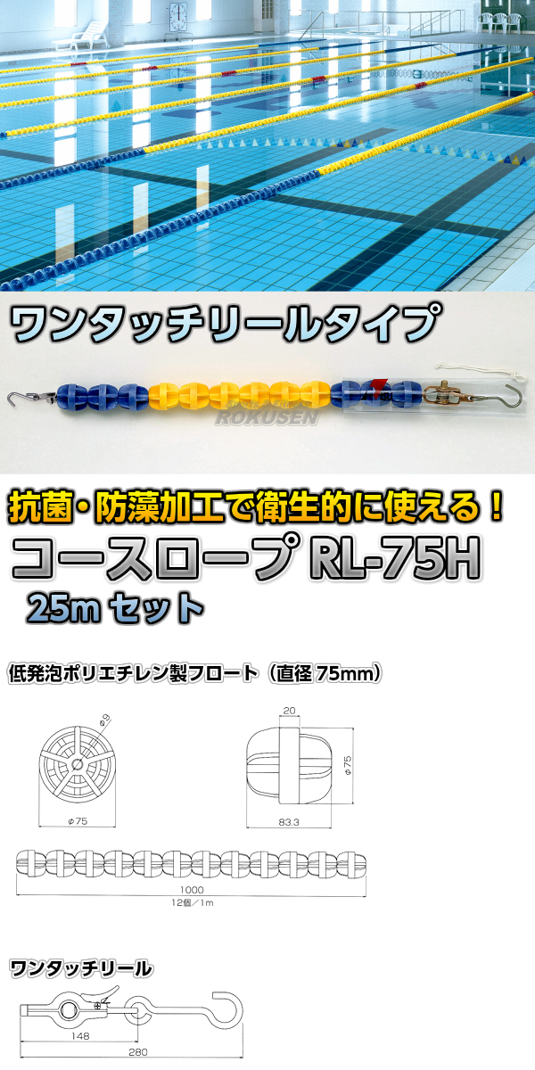 コースロープ RL-75H ワンタッチリールタイプ 25mセット プール