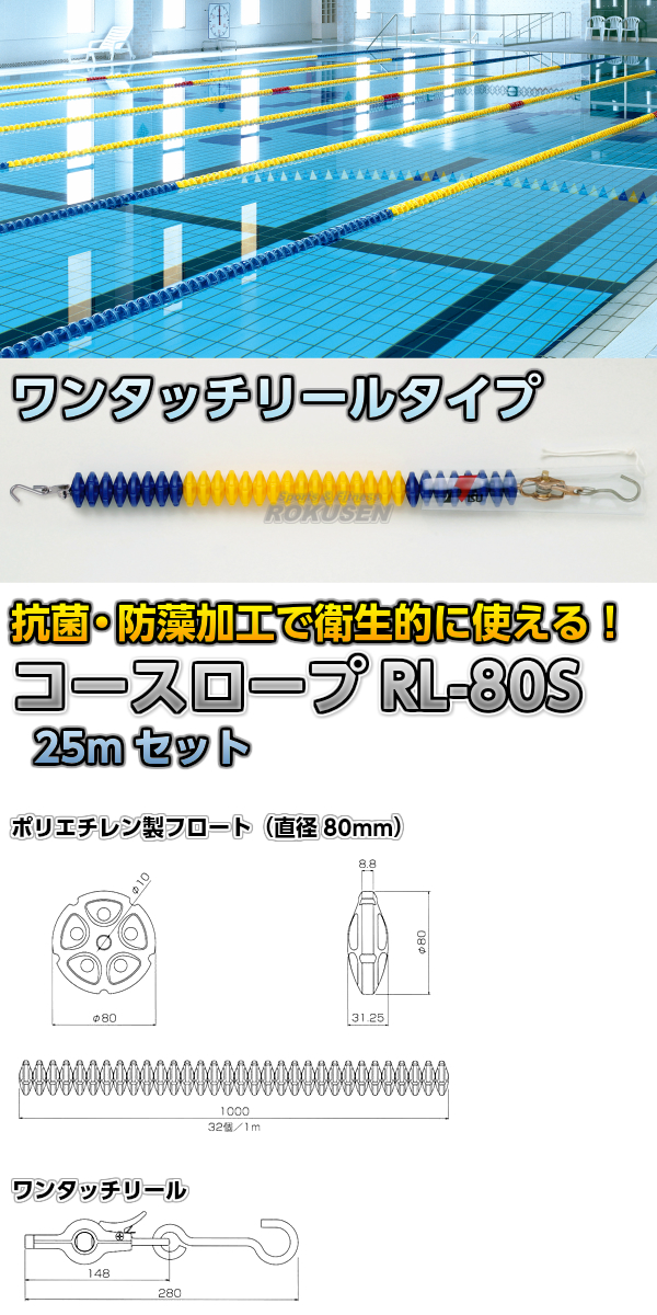 コースロープ RL-80S ワンタッチリールタイプ 25mセット プール