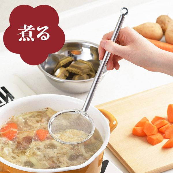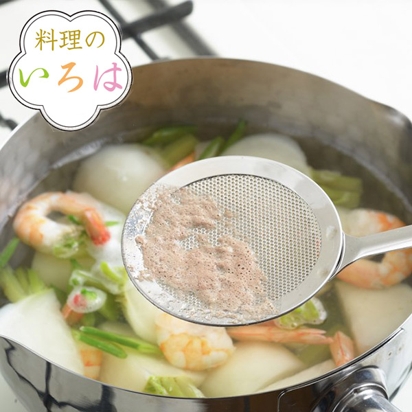 あくとり 料理のいろは 細かいアミのあくとり ステンレス 燕三条製 ( あく取り アク取り かすあげ カス揚げ カスあげ アク取りお玉 アク取りスプーン ゴミ取り キッチンツール 下ごしらえ キッチングッズ おしゃれ )