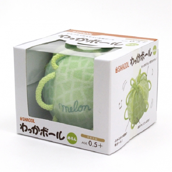 | SHAOOL シャオール わっかボール ミニ めろん 布製ガラガラ 出産祝い、ハーフバースデイ、男の子・女の子の誕生日プレゼント、クリスマスプレゼントにおすすめの、自由な発想、発展する遊びが楽しい、静岡発の知育玩具メーカー「SHAOOL シャオール」の知育玩具です。 |