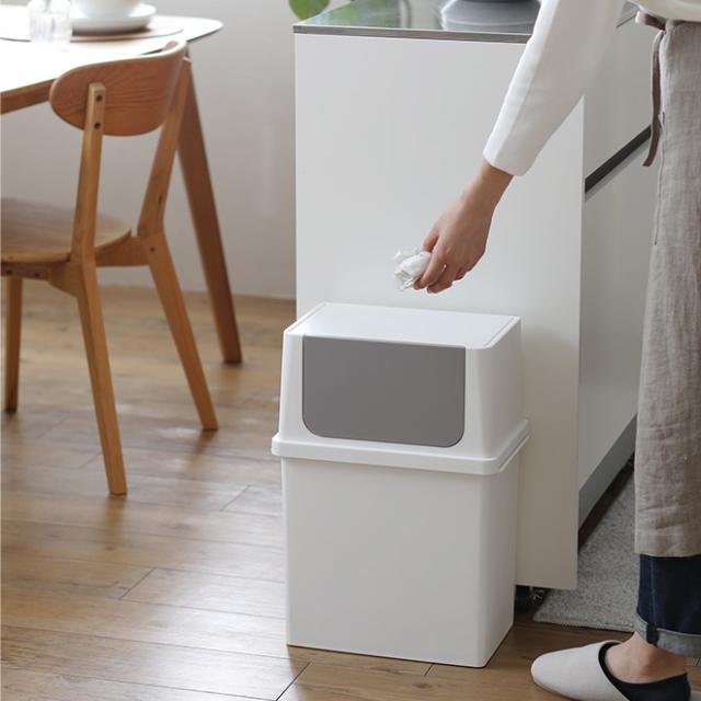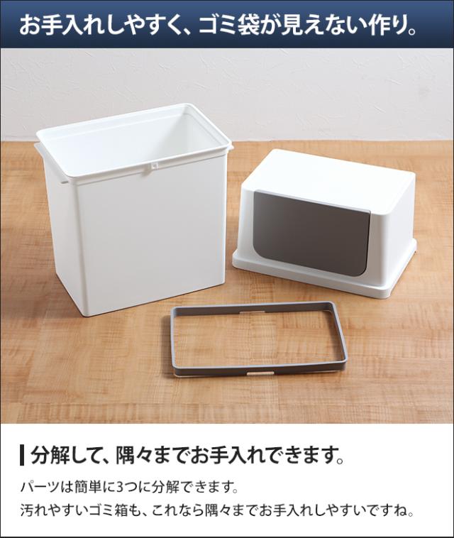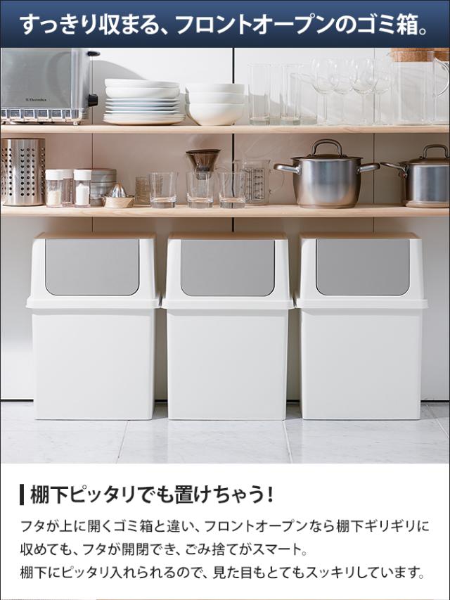 棚下の限られたスペースでも置きやすいフロントオープンは、並べて重ねて、分別用ゴミ箱としてもお勧めです。色数を抑えたモノトーンなスタイルなので、お部屋をスッキリとまとめられます。